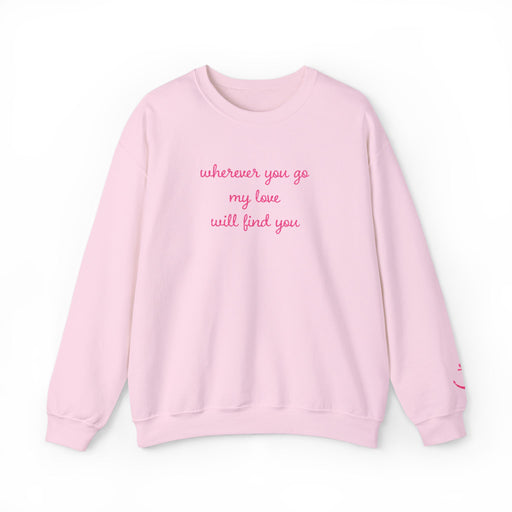 View full detailsWherever you go, my love will find you. Pink thread with embroidered heart anchor on sleeve. embroidered design on chest and sleeve preshrunk fle...