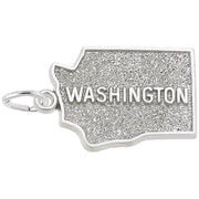 Washington State map charm available in sterling silver, gold plated, 14K Yellow Gold, and 14K White Gold.