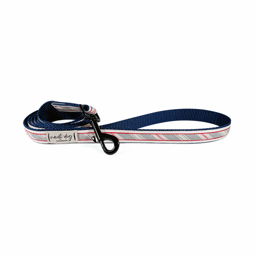 View full detailsRed, tea-stained white and blue ticking dances across this lovely hand-woven, yarn-dyed fabric. Our ribbon leashes are made from high-quality, desi...