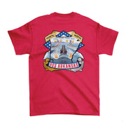 Creating a new legacy! Support the families of the USS Arkansas Family Readiness Group with a purchase of this unisex t-shirt. Features the USS Arkansas crest in full color on the front.