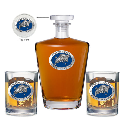 View full detailsThis 25-ounce glass decanter is embellished with a fine pewter casting, 3D Topper, and matched with two Double Old Fashioned Glasses. The glassware...
