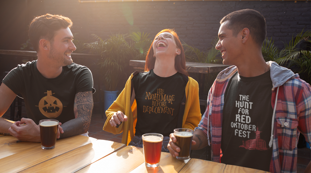 View full detailsIt's the Nightmare Before Deployment! Soft vintage orange print on a black t-shirt. Features 4.2 oz, 100% preshrunk ring spun cotton Relaxed fit...