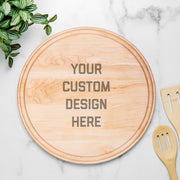 Made in USA wood charcuterie board. Its round design, complete with a convenient groove to catch spills, makes it ideal for serving appetizers at parties or main dishes to valued guests. Customize with laser engraving to celebrate your Navy pride. Perfect for gifting, display, and food prep, this cutting board adds beauty and functionality to any kitchen space!