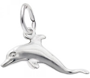 Dolphin charm available in sterling silver, gold plated, 14K Yellow Gold, and 14K White Gold.