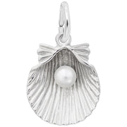 Shell with Pearl charm available in sterling silver, gold plated, 14K Yellow Gold, and 14K White Gold.