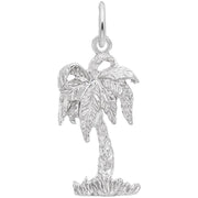 Palm tree charm available in gold plated, sterling silver, 14K yellow gold and 14K white gold.