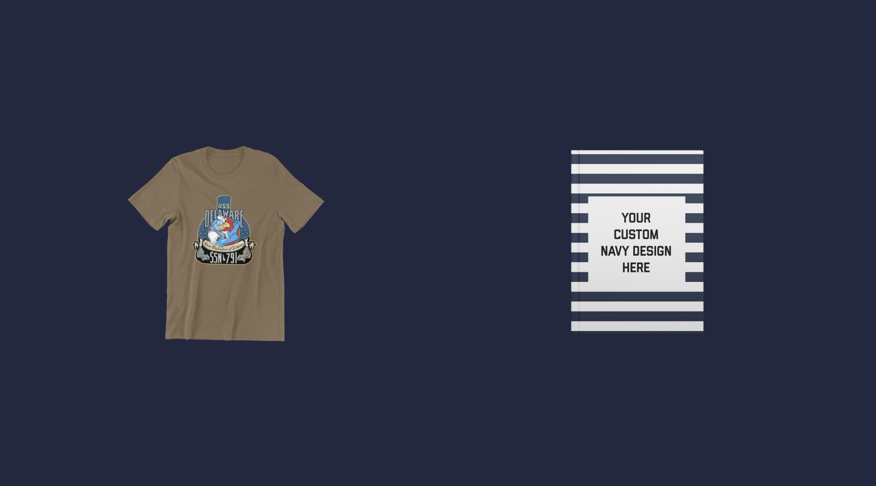 View full detailsShow your command pride with a custom Navy tee, made just how you want it. Custom designs can be full color, or one color in white or black ink. F...