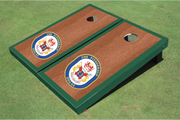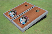 Customize a cornhole board set with any Command crest, rate, insignia, emblem, or logo from the Navy. Beautiful rosewood stain with custom border color and design.