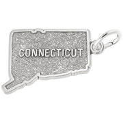 Connecticut map charm available in sterling silver, gold plate, 14K yellow gold, and 14K white gold.