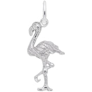 Flamingo charm available in sterling silver, gold plated, 14K Yellow Gold, and 14K White Gold.
