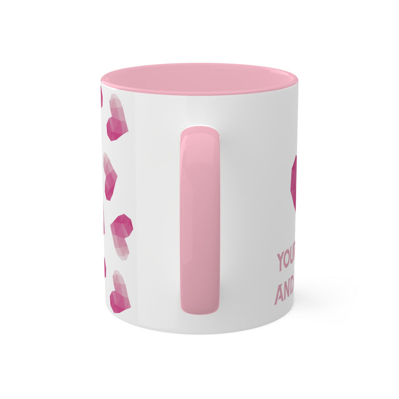 This mug holds 11oz of your favorite pick-me-up juice and comes with a pink colored handle and interior. FREE SHIPPING. Production times takes 2 business days.