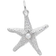 Starfish with Pearl charm available in sterling silver, gold plated, 14K Yellow Gold, and 14K White Gold.
